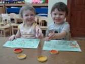 - Покажіть мені свої чарівні пальчики, ось вони. А тепер, сховайте, немає пальчиків. А тепер знову покажіть, а тепер сховайте. А тепер покажіть ті пальчики, якими ви будете малювати (хтось малює тільки вказівним пальчиком, а хто - то двома, а один малюк в моїй групі малює трьома - вказівним, середнім і великим пальцями).