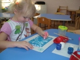 Творчий процес заманює дітей, а малюків особливо! Коли на заняттях, я бачу очі дітей, які блищать від захоплення, чую їх сміх, бачу, як діти малюють, порушуючи всі заборони стандартного малювання, то я в захваті! Колись видатний педагог Е. А. Флерина писала: ":взявши пензель з банки з червоною фарбою, не можна її класти в іншу фарбу, промалювавши її, її треба покласти назад і взяти кисть з іншого банки, або ж промити пензель водою і витерти, не можна мазати стіл, руки, обличчя і т. п.". А я заперечую, потрібно мазати, та не тільки пальчики, але і долоньки, носик, ступні, і тоді, наші малюнки: " оживуть: і півні закукарекают, і ніжки побіжать по доріжці, і листя зашелестять на вітрі, і медузи на дні океану розпочнуть гру :".