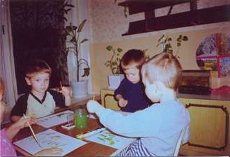 3. Результативність досвіду. Над формуванням кольоросприйняття у дітей раннього і молодшого дошкільного віку працювала протягом трьох років, починаючи з 2006 року. За цей час малята раннього віку (1,5 - 2 років) навчилися розрізняти основні кольори (жовтий, червоний, зелений, синій), засвоїли білий і чорний кольори. Діти вміють обирати з двох запропонованих кольорів потрібний. Наприклад, малюють сонечко жовтою, а травичку - зеленою фарбою.