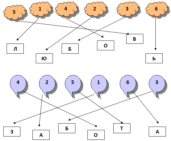Дві команди складають слова на кульках і хмарах. (Картинки з буквами перевернуті до дітей зворотною стороною. Діти знаходять цифри по порядку - по ниточці букву, перевертають картинку і читають слово)
