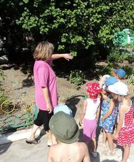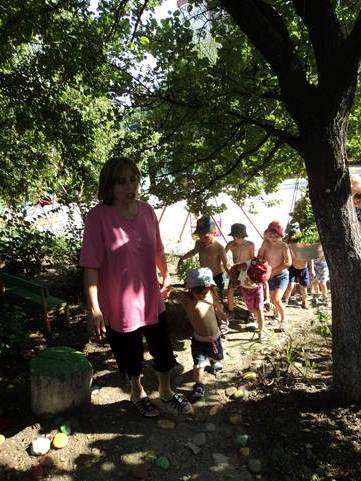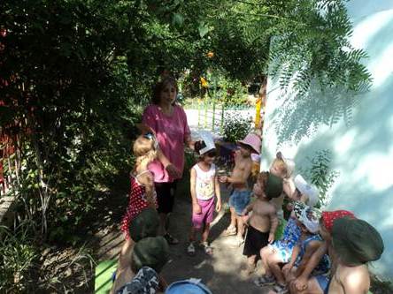 Діти, вихователь йдуть по стежці. Подорож супроводжують