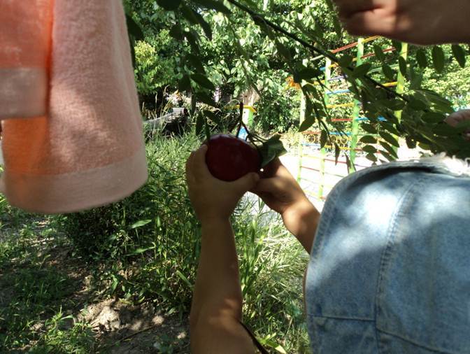 -Хлопці, запрошую вас пригоститися дарами нашого саду.