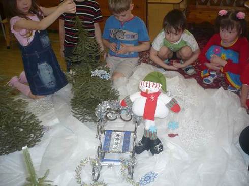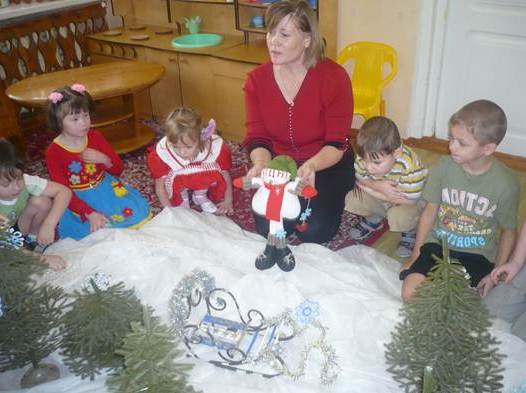 (Сніговик дарує сніговиків і йде, діти після заняття грають зі сніговиками).