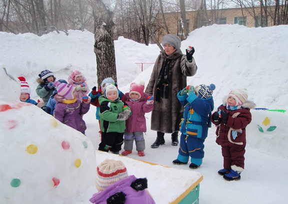 Конспект прогулянки взимку в молодшій групі з використанням зимових снігових будівель.