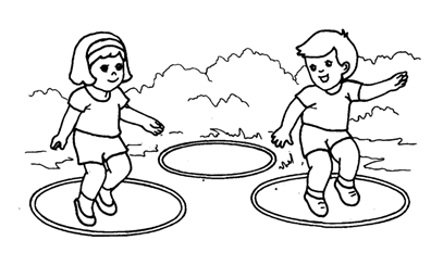 При спрыгивании з гім.лавки стрибнути вгору і м'яко приземлятися, зберігаючи правильну поставу, стрибки в обручі на двох ногах. |