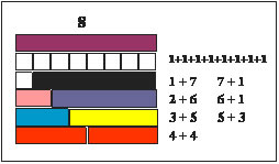 - 8 - це 1і 7 ; 8 - це 2 і 6 ; 8 - це 3 і 5 ; 8 - це 4 і 4 ; 8 - це 5 і 3 ; 8 - це 6 і 2 ; 8 - це 7 і 1.