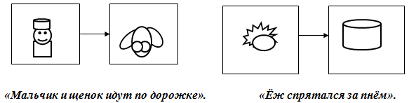 1. Гра «Підзорна труба». Мета: Вчити виділяти об'єкти, зображені на картині. Дітям пропонується картина для розглядання і імітація підзорної труби. Необхідно навести око «підзорної труби» на один об'єкт і назвати його. Дітям дається схема відповіді: «Я бачу на картині дівчинку...» і т. д. 2. Гра «Чарівний гість - Об'єднання». Мета: Продовжувати вчити дітей встановлювати взаємозв'язки між об'єктами, зображеними на картині; складати схеми речень, одержані об'єднань, використовуючи символічні позначення частин мови. Для складання осмисленого розповіді по картині, потрібно навчитися встановлювати взаємозв'язки між об'єктами, зображеними на ній. З цією метою передбачається пояснити, чому чарівник «Об'єднання» об'єднує два навмання вибраних об'єкта, як вони можуть бути пов'язані між собою. Потім діти самостійно об'єднують по два об'єкти на картині і складає прості, за формою, пропозиції, використовуючи при цьому символи частин мови.