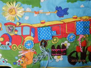 Розвиток дрібної моторики у дітей як один із засобів розвитку мовлення пропонується давно. Ігри та вправи на розвиток дрібної моторики допомагають активізувати активні і пасивні рухи пальців рук, розвивають координацію рухів, розвивають почуття ритму, самоконтроль, синхронність виконання руху і т. д., готують руки до письма. Така цілеспрямована робота, спрямована на розвиток дрібної моторики пальців рук дітей сприяє більш швидкому і повноцінному формуванню мови. Розвиваючі м'які книжки килимки для малюків, їх вперше, я побачила в інтернеті і ця цікава ідея мені дуже сподобалася. Адже багатьом давно відомо, що розвиваючи дрібну моторику, (а ця книжка-іграшка призначена саме для цього), розвиваються тактильні відчуття, а разом з тим пам'ять, слух, кольорове сприймання, мислення, фантазія і мова. В ігровій формі малюк вчиться застібати і розстібати всілякі застібки (шнурівки, гачки, петлі, блискавки, липучки та ґудзики). Спочатку хотілося побачити таку книжку, де в грі можна було б автоматизувати звуки, але книжки однакові і деякі сторінки мені здавалися зайвими, так і ціна за таку книжку виявилося дуже високою. Ось я і вирішила зробити книжки-умняшки і килимки-развивайки своїми руками. Потім я перейшла до розвиваючих коврикам. Розмір у них різний від 1 метра до 40 див. Всі представлені завдання дозволяють перетворити заняття в захоплюючу гру! |