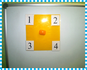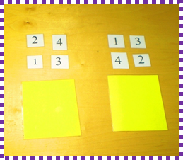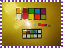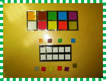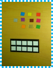 Гра «Кольорові квадрати» Другий варіант. Таблички вибираються дітьми за бажанням. Діти кладуть їх перед собою і запам'ятовують, де, який знаходиться колір. Потім самі перевертають табличку на іншу сторону і, не підглядаючи, розкладають кольорові квадратики, згідно із зразком. Потім відкривається зразок, і діти перевіряють правильність виконаного завдання. Гра «Запам'ятай куточки»