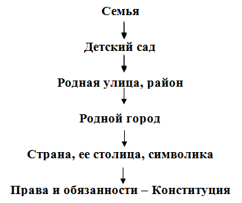 Таким чином, система і послідовність роботи з патріотичного виховання дітей може бути представлена наступним чином: