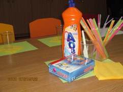 Репродукції, фотографії, малюнки квітів (ірис, гвоздика, волошки, незабудки, нарцис, календула); букви кольори спектру; ксероксные листи, трубочки для коктейлю, гуашеві фарби, рідке мило для миття посуду, вода, разові стаканчики і ложечки, газети, серветки, клейонка для столу.