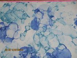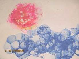 Як тільки Міхур лопне, то на папері залишиться його портрет - великий і маленький, овальний і круглий, один або декілька, червоний, синій, жовтий. Подивіться, як Мильні Бульбашки і наші легені допомагають нам малювати. Виявляється, що можна малювати і без пензлика!