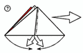 6. Нижні кути отриманого ромбика відігніть догори так, щоб вийшов трикутник.