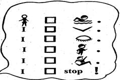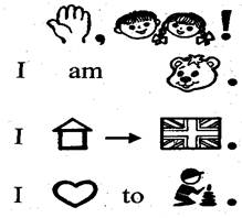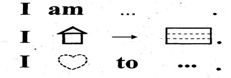 - Вчити дітей вживати в мові мовленнєві зразки з допомогою пиктографических знаків, схем: I can run. I live in the forest. Навчати побудови граматично і стилістично вірного пропозиції.