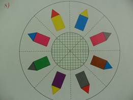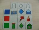 Вихователь: Перед вами лежать маленькі трикутники - це частини кола. У них намальовані різнокольорові будиночки. Складіть коло так, щоб однакові даху були один навпроти одного.