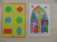 Перед вами гра «Логічні будиночки». У цій грі потрібно знайти фігурки, схожі за формою. Потім переверніть картки справа наліво, якщо у вас склався будиночок, завдання виконали правильно. Уважно розгляньте малюнок. Назвіть пору року (уточнюючи, за якими ознаками це гравці визначають) і знайдіть на картинці предмет, зображений три рази.