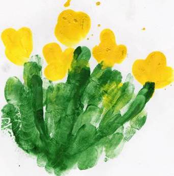 Вчити передавати образ квітки, його будову і форму використовуючи пальчики і долоньки.