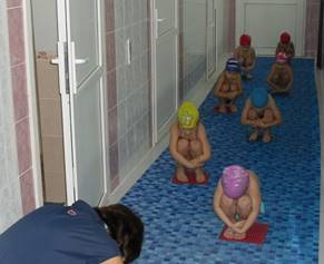 Інструктор: У воду ми з вами зайшли, та тільки нічого з нами не відбувається. Давайте спробуємо вмитися водою, може, що й вийде.